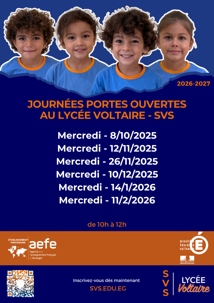 Our ambition is biculturalism at the interface between France and Egypt, trilingualism with mastery of French, English and Arabic, and a solid general culture that allows us to offer students the academic excellence necessary for access to the best higher education institutions throughout the world. The management team and all the teams at Voltaire high school are proud to welcome you and wish you a pleasant visit to this website. ————————————————– ————————————————– —————————— A word from the principal The Voltaire French high school is a partner establishment of the AEFE and is approved by the French Ministry of National Education from preschool (PS) to grade 12 (Terminal). The French programs are taught in an international context and in accordance with the values of equity, solidarity, sharing and openness to the world. To uphold these values, a team of qualified and regularly trained teachers is in place to promote an innovative and enriched pedagogy that contributes every day to the well-being and performance of your children. Many artistic, cultural and solidarity partnerships are active to nourish your children’s academic journey. In addition, the Voltaire high school campus has all the necessary equipment to implement a student-centered pedagogy. It is through a multimodal transmission of knowledge that our students awaken their curiosity, their critical thinking, but above all their thirst to discover and understand the world. Day after day, they thus find the keys to their autonomy and the path to their success. Our commitment is to promote the development of each and every student’s potential, in an atmosphere of demand, trust, listening, tolerance and respect. Our ambition is the biculturalism with the interface between France and Egypt, the trilingualism with mastery of French, English and Arabic, and a solid general culture that allows us to offer our students the necessary academic excellence to access the best higher education institutions around the world . The management team and all the teams of Voltaire High School are proud to welcome you and wish you a pleasant visit to this website.